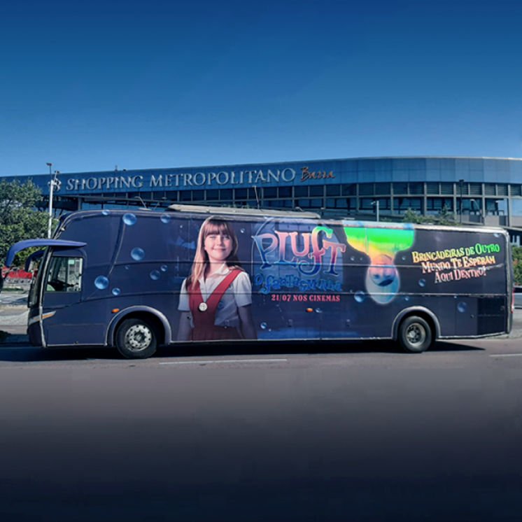Também levamos os fantasmas para as ruas em uma ação de ativação incrível, que consistiu em envelopar um ônibus com a identidade do filme. Além disso, decoramos o interior do veículo com a temática, para a criançada subir a bordo e mergulhar no universo do filme.