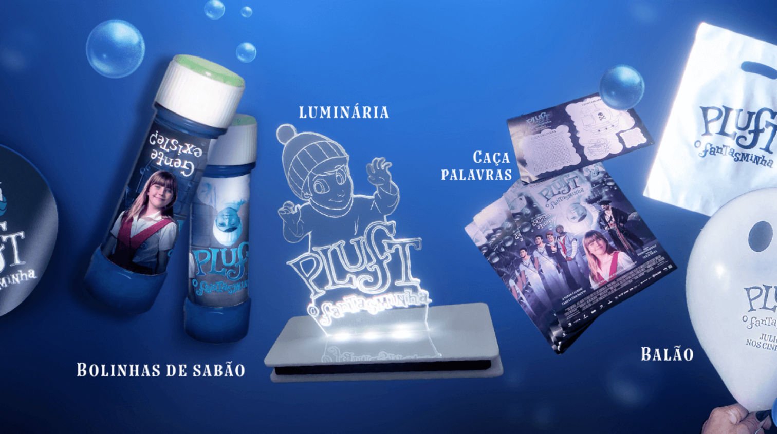 Os pequenos influencers e seus pais e mães receberam um kit personalizado do filme, com uma luminária de fantasminha, bolhinha de sabão e cartela de adesivos.